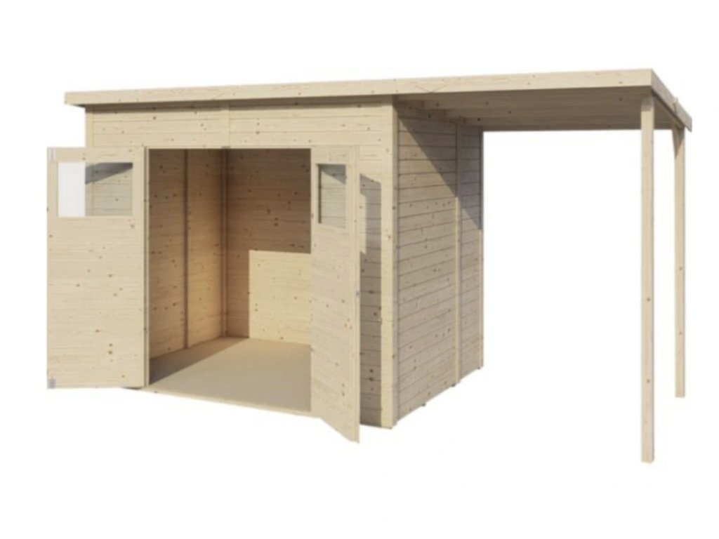 Díky promyšlenému uspořádání získáte prostor, který lze využívat celoročně – uvnitř uložíte zahradní techniku, nářadí či sportovní vybavení, zatímco terasa nabízí kryté místo k posezení i během teplých letních dnů. Robustní dřevěná konstrukce z kvalitního materiálu zajišťuje vysokou odolnost a dlouhou životnost, takže domek se stane spolehlivou součástí vaší zahrady na mnoho let.